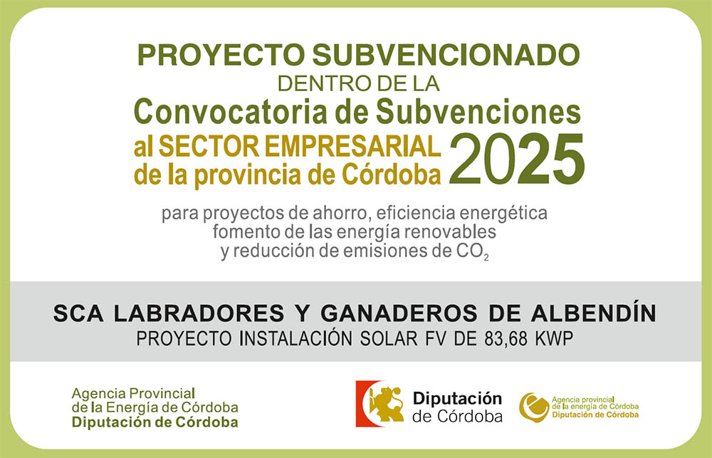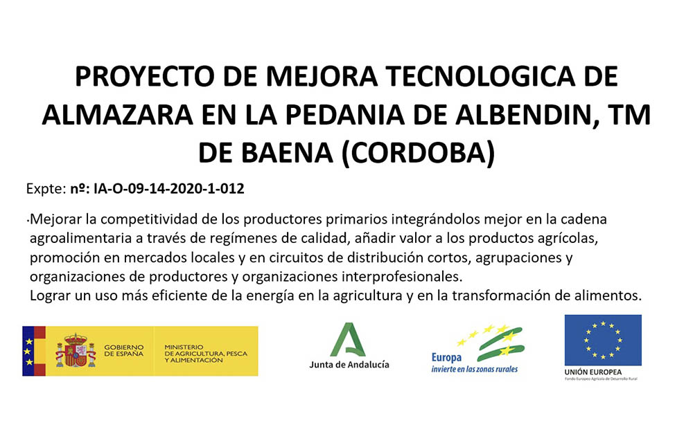 La Sociedad Cooperativa Andaluza de Labradores y Ganaderos de Albendín, fundada en 1963, forma parte de la prestigiosa Denominación de Origen Protegida Baena. Con una sólida trayectoria en la elaboración de Aceite de Oliva Virgen Extra de máxima calidad, la cooperativa ha diversificado sus servicios agrícolas manteniendo sus raíces y compromiso con el entorno.